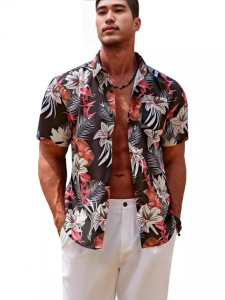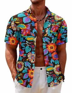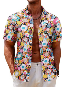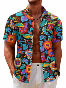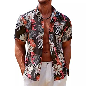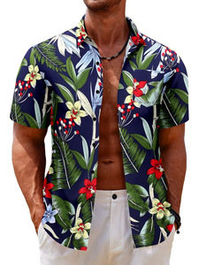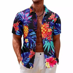 2025 夏クロスボーダーハワイアンメンズ半袖プリントカジュアルボタンダウンカラービーチシャツ供給メーカー直販