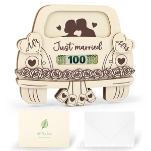 木製クリスマスマネークリップ結婚式ウェディングマネーと封筒ウェディングカードクリエイティブギフト木製車のマネークリップ