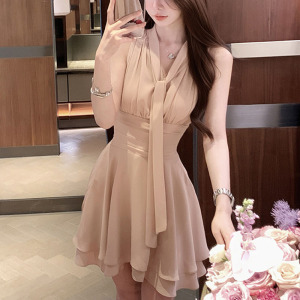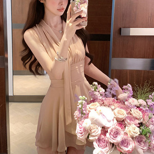 法式气质掐腰系带荷叶边连衣裙女夏御姐轻熟风收腰无袖雪纺背心裙