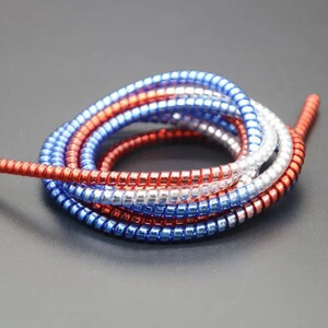 明るい青と赤のケーブル結束具 - 3.3m は、携帯電話の充電ケーブル 2m 本を巻き付けることができます。
