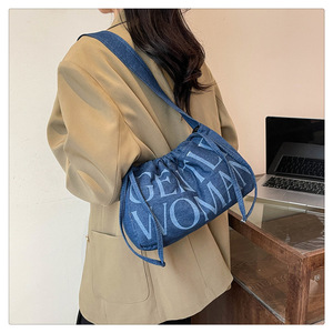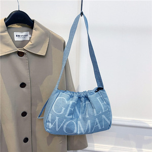 跨境泰国Gentle Woman牛仔风斜跨帆布包小众饺子女包包潮流单肩包