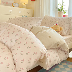 ミルクふふ~新疆綿100% 学生寮4点セット 綿寝室二段ベッド 純綿ボックスシーツ3点セット