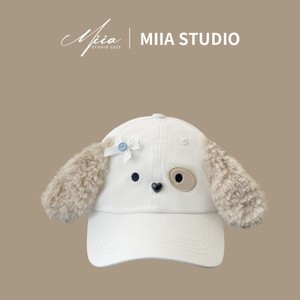 可爱卡通蝴蝶结小狗鸭舌帽女春夏学生搞怪显脸小宽檐百搭棒球帽