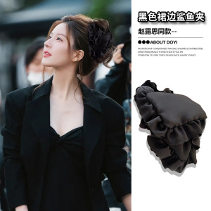 2025 新しい黒のプリーツレース三角形ヘアクリップ女性のハイエンドサメクリップ後頭部ヘアクリップ頭飾り