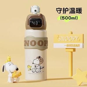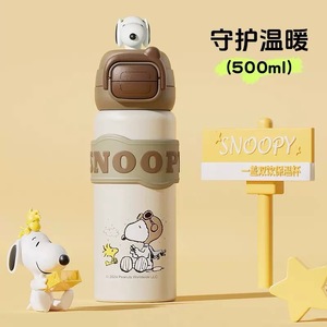 史努比保温杯男女高颜值双饮吸管水杯学生儿童上学便携双饮水杯子