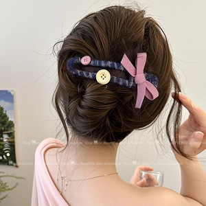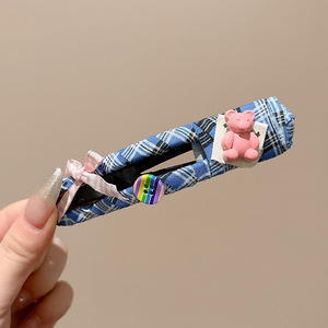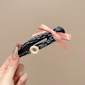 7#牛仔蓝+红条纹双蝴蝶结鸭嘴夹 夹子11cm 蝴蝶结约9cm