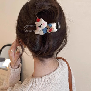 可爱卡通小狗挎包发夹女2025新款后脑勺盘发一字鸭嘴夹子头饰发卡