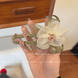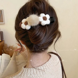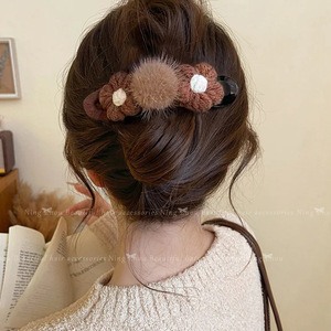 8#咖色毛线花朵12cm鸭嘴抓夹