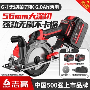 Chigo ブラシレス電気丸鋸ハンドプッシュリチウム充電式木工ポータブル電動鋸大理石切断機包丁鋸