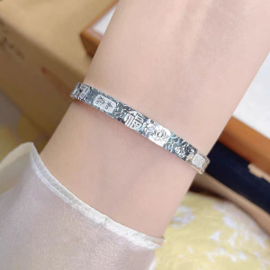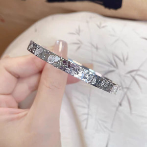 爆闪CNC工艺平安招财吉言三面碎冰冰手镯时尚高级感碎碎冰手环银