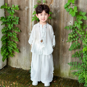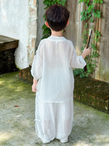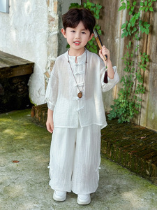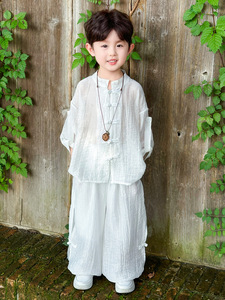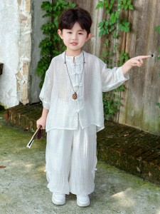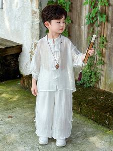男童套装夏季2025新款儿童国风唐装男宝宝夏装薄款新中式衬衫汉服