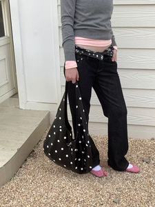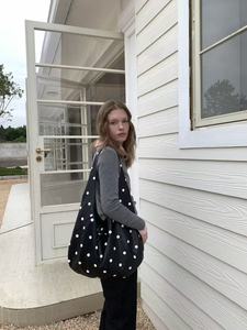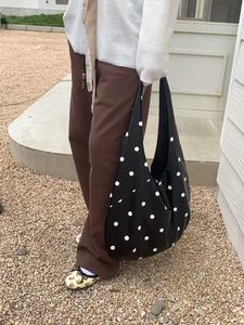 2025 新しいニッチデザインミニマリストスタイルファッション大容量黒と白の水玉ソフトレザーバッグアークショルダートートバッグ