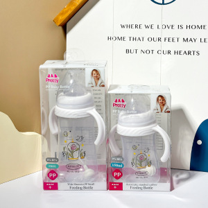 厂家直新生婴儿奶瓶防摔宽口径宝宝用硅胶奶嘴防胀气含吸管PP水杯