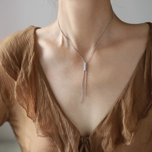 中古 クローダイヤモンド チェーン タッセル ビーズ ロング Y字型 スリム クラシック 鎖骨チェーン チタン鋼メッキ 18K ゴールド XL652