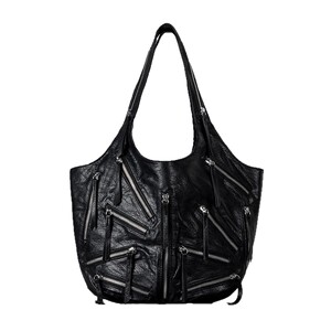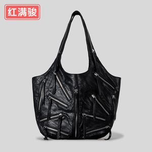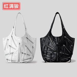 レトロオートバイ脇バッグ、ファッショナブルで多用途、ダークマルチジッパーデザイン、ショルダーバッグ、トートバッグ、大容量女性工場