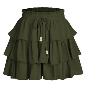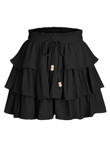 アマゾン 2025 外国貿易婦人服三層ケーキスカートパンツヨーロッパとアメリカのブティック弾性ウエストレースアップショートスカートパンツ女性用