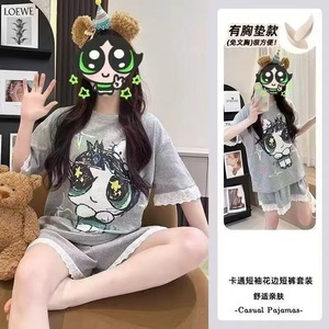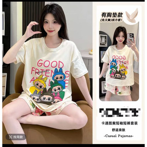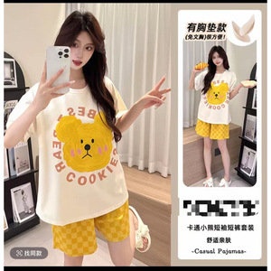 带胸垫睡衣女爆款短袖短裤夏季家居服云朵棉套装休闲少女可外穿