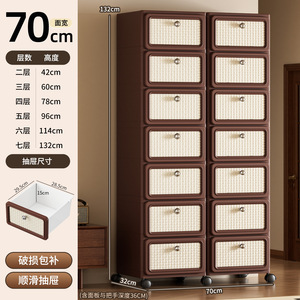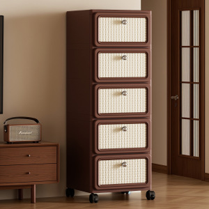 收纳柜抽屉式收纳箱免安装中古风客厅零食储物柜五斗柜卧室床头柜