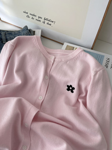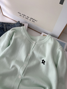 刺繍カーディガンレディース薄手新作秋冬韓国風ラウンドネックニットトップショートジャケット初秋日焼け止め服6027