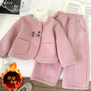 韩版女童加绒加厚长袖外套套装2025年冬季新款保暖上衣长裤两件套