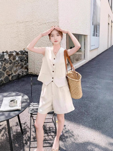 女性のためのハイエンドのオールドマネースタイルの白いベストとショーツのツーピーススーツ、2025年夏、エレガントでエレガントな衣装の完全なセット