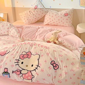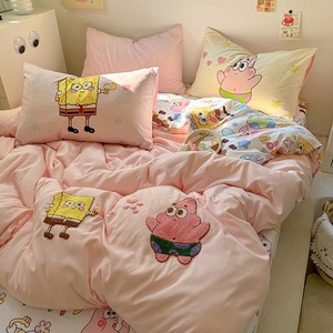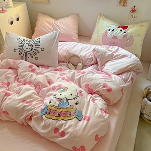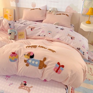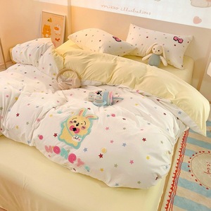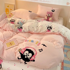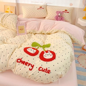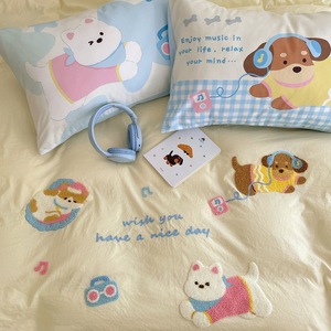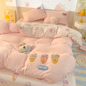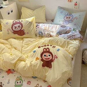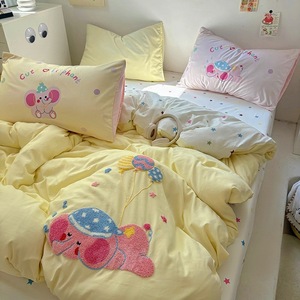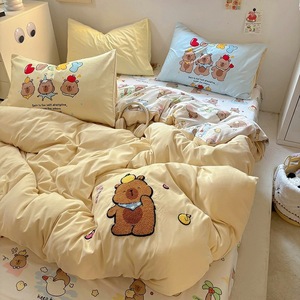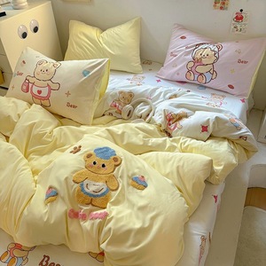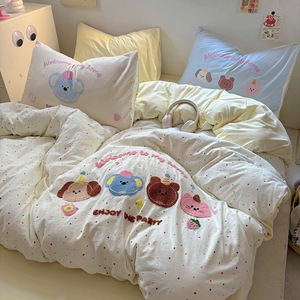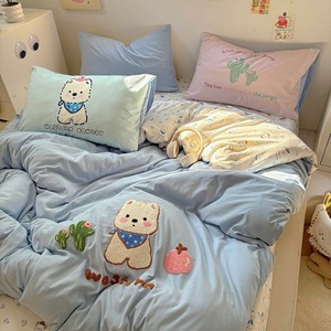 漫画かわいいタオル刺繍洗浄綿ベッド 4 点セット 2025 新しいキルトカバー学生寮のベッドシーツ 3 点セット
