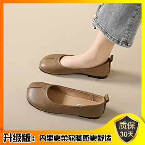 女性用夏用スリッポンおばあちゃん靴、超ソフトソールスクープシューズ、妊婦用フラットシューズ、ブラウン