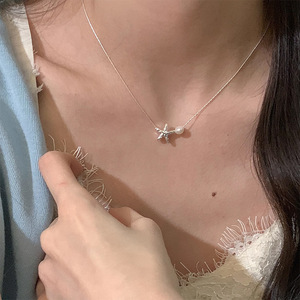 925 スターリングシルバーアクアマリン蝶ネックレス女性の非退色インニッチハイエンドライト高級鎖骨チェーンアクセサリー卸売