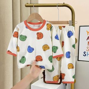 子供用ホームウェアセット、ベースレイヤー、パジャマセット、男の子と女の子のパンツとトップス、2025新しいスタイル