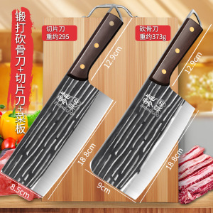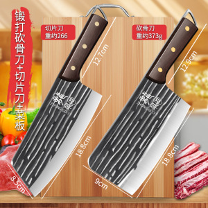 锻打铜钉切片刀+砍骨刀+菜板