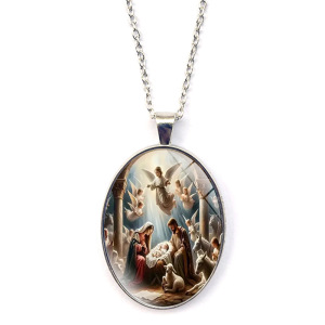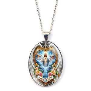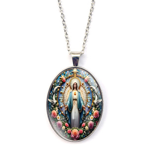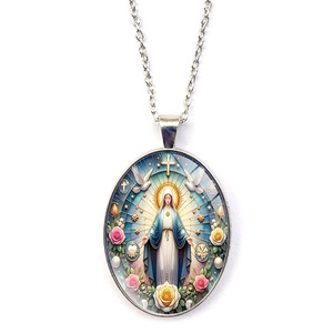 クロスボーダー新製品聖マリアの聖心オーバルペンダントネックレス女性の多用途ヨーロッパとアメリカのレトロなセーターチェーンジュエリー卸売