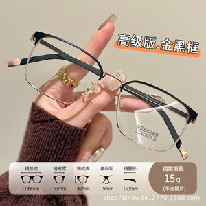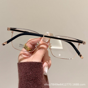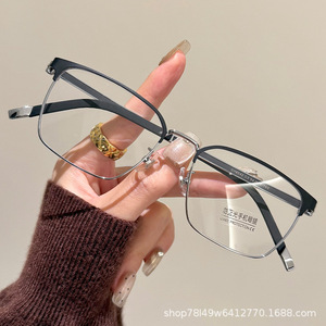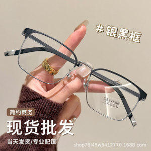商务半框眼镜近视男款可配有度数方形防蓝光超轻黑框眼镜现货批发