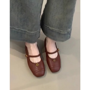羊皮版~真皮复古山茶花浅口软皮一字扣带单鞋女法式晚晚鞋玛丽珍