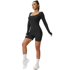 国境を越えたヨーロッパとアメリカのワンピースヨガ服、新しいスクエアネック、背中の開いたヒップリフティング、快適でタイトなシェイプアウトドアスポーツフィットネス服