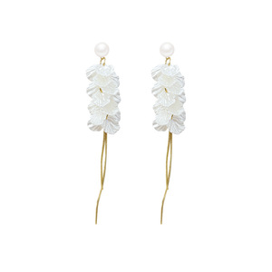 パールホワイトの花びらタッセルイヤリング、ハイエンド、軽い高級感、多用途イヤリング、女性用の海辺のリゾートスタイルのイヤリング