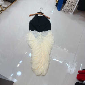 13ラインの新しい売れ筋クロスボーダーホルターネックコントラストカラーバックレスプリーツスリムフレンチエレガントドレスA2 # 8032
