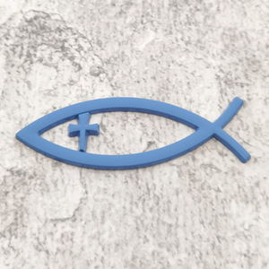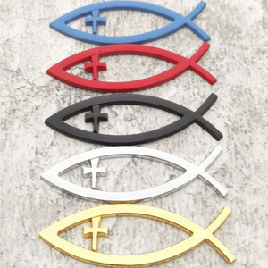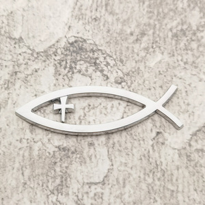 跨境热卖汽车车标 3D立体金属鱼贴标 个性装饰十字架鱼形车身贴