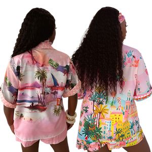 D2527 ヨーロッパとアメリカのクロスボーダーファッション新しい婦人服カジュアルプリントビーチ休暇ラップシャツとショーツの3点セット