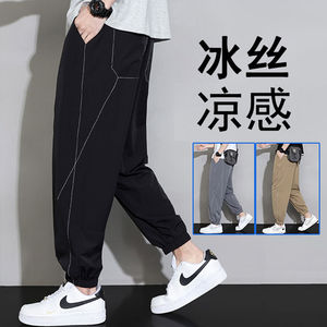 夏用薄氷シルク速乾パンツメンズルーズカジュアルトレンド速乾スポーツレギンスハーレム9点パンツ