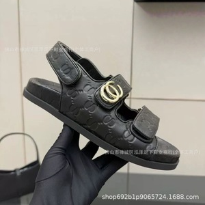 G家夏季2025新款平底露趾凉鞋女魔术贴松糕底防滑休闲罗马沙滩鞋