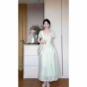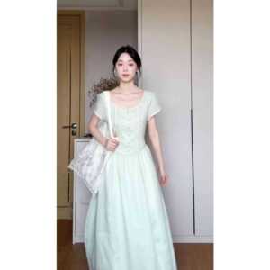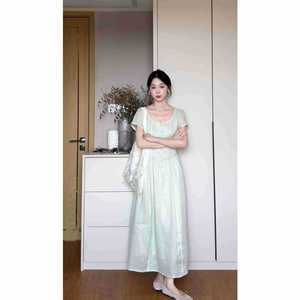 ハイエンドの優しくエレガントなミントグリーンのレースドレス女性の夏の新しいウエスト気質ロングスカート