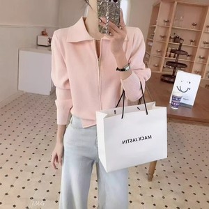 春の新スタイル年齢軽減気質ボトムコート長袖ラペルジッパーショートスタイルファッショナブルなセーターレディースカーディガン