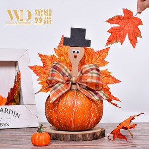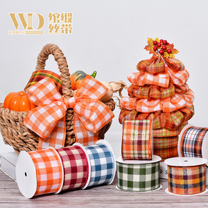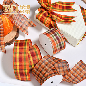 跨境圣诞节彩带RIBBON办公文化蝴蝶结感恩节装饰品秋收格子拷克带