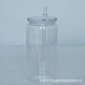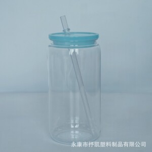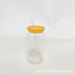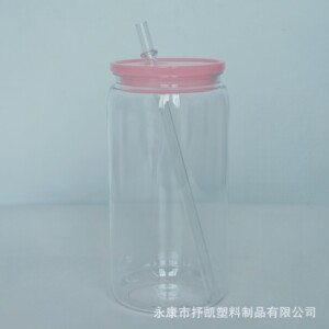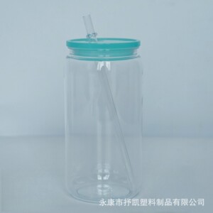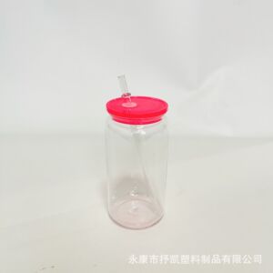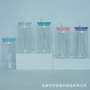 国境を越えて人気のカラーカバーPC素材透明プラスチックカップ16オンスメイソンジャー高見えエコストローカップロゴ入り可能