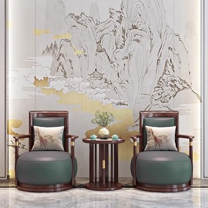 ウッディウッド無垢材レジャーチェアコンビネーション3点セットレザーシングルソファチェアヴィラリビングルームホームハイエンド家具