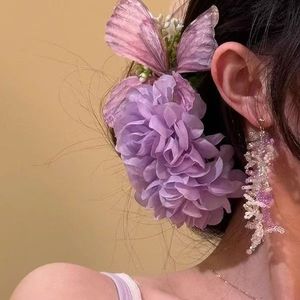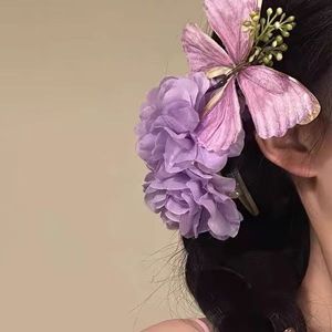 スーパーフェアリーパープル模擬蝶の花のヘアピン女性のための 2025 新しいサイドクリップヘアピン雰囲気カモノハシクリップ頭飾り