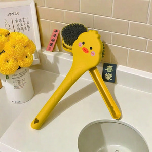 小さな黄色いアヒルの鍋洗いブラシ、鍋洗い用の創造的な漫画の鍋ブラシ、鍋を傷つけない、長いハンドルのキッチン掃除ブラシ