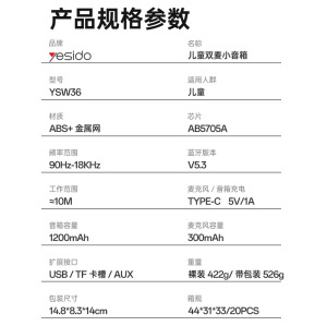 yesido无线蓝牙音箱 便携式儿童k歌带话筒低音炮 音响功放一体机