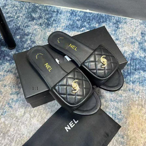 小香风金属扣菱格皮面一字拖鞋女2025新款夏季时装凉鞋书包翻扣