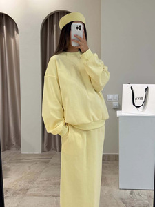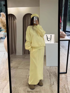 カジュアルファッションスポーツスーツ女性のための 2025 春と秋の新しいルーズ長袖スタイルスウェットシャツロングスカート 2 点セット